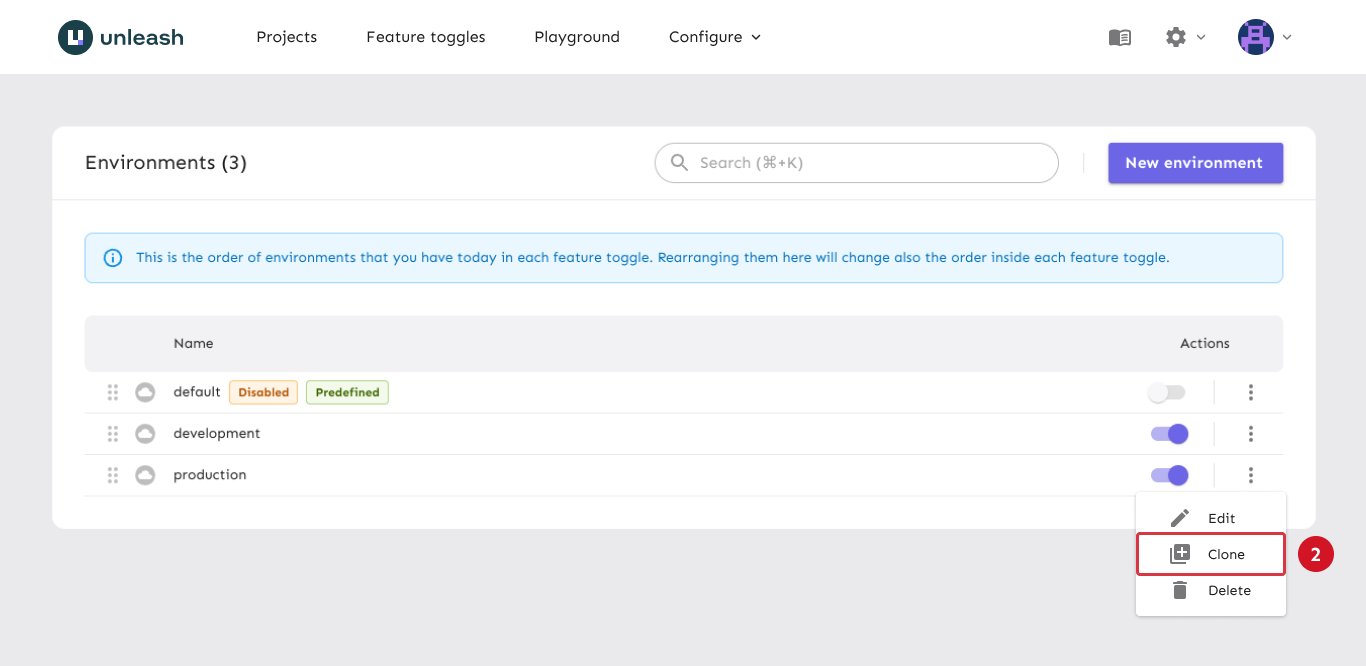 * docs: add environment cloning and how-to guide * add next steps in how-to, update reference * update how-to, add images * Update website/docs/how-to/how-to-clone-environment.mdx Co-authored-by: Simon Hornby <liquidwicked64@gmail.com> * Update website/docs/how-to/how-to-clone-environment.mdx Co-authored-by: Simon Hornby <liquidwicked64@gmail.com> * Update website/docs/user_guide/environments.md Co-authored-by: Simon Hornby <liquidwicked64@gmail.com> * Update website/docs/how-to/how-to-clone-environment.mdx Co-authored-by: Simon Hornby <liquidwicked64@gmail.com> * Update website/docs/user_guide/environments.md Co-authored-by: Simon Hornby <liquidwicked64@gmail.com> * Update website/docs/how-to/how-to-clone-environment.mdx Co-authored-by: Thomas Heartman <thomas@getunleash.ai> * Update website/docs/how-to/how-to-clone-environment.mdx Co-authored-by: Thomas Heartman <thomas@getunleash.ai> * Update website/docs/how-to/how-to-clone-environment.mdx Co-authored-by: Thomas Heartman <thomas@getunleash.ai> * Update website/sidebars.js Co-authored-by: Thomas Heartman <thomas@getunleash.ai> * Update website/docs/how-to/how-to-clone-environment.mdx Co-authored-by: Thomas Heartman <thomas@getunleash.ai> * Update website/docs/how-to/how-to-clone-environment.mdx Co-authored-by: Thomas Heartman <thomas@getunleash.ai> * Update website/docs/how-to/how-to-clone-environment.mdx Co-authored-by: Thomas Heartman <thomas@getunleash.ai> * Update website/docs/user_guide/environments.md Co-authored-by: Thomas Heartman <thomas@getunleash.ai> * Update website/docs/user_guide/environments.md Co-authored-by: Thomas Heartman <thomas@getunleash.ai> * address PR comments * Update website/docs/how-to/how-to-clone-environments.mdx Co-authored-by: Thomas Heartman <thomas@getunleash.ai> * Update website/docs/user_guide/environments.md Co-authored-by: Thomas Heartman <thomas@getunleash.ai> * Update website/docs/user_guide/environments.md Co-authored-by: Thomas Heartman <thomas@getunleash.ai> * Update website/docs/user_guide/environments.md Co-authored-by: Thomas Heartman <thomas@getunleash.ai> * fix uppercase in guide Co-authored-by: Simon Hornby <liquidwicked64@gmail.com> Co-authored-by: Thomas Heartman <thomas@getunleash.ai>